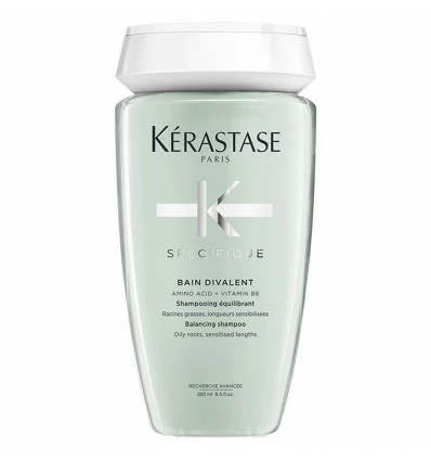 Bain Divalent Kérastase : shampooing équilibrant pour racines grasses et longueurs sensibilisées.