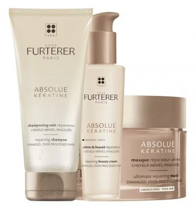 Pack Cheveux Épais Absolu Kératine René Furterer – composé d’un Shampooing Soin 200 ml, d’un Masque Réparateur Ultime Cheveux Épais 200 ml et d’une Crème De Beauté Réparatrice 100 ml pour réparer, protéger et nourrir les cheveux abîmés et fragilisés.
