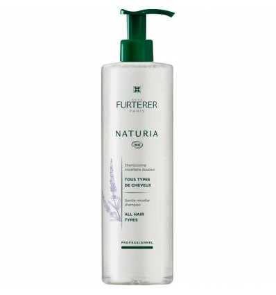 Shampooing Naturia Bio René Furterer 600ml : shampooing micellaire douceur pour tous les types de cheveux. À l’eau florale de lavande et à l’huile de ricin bio.